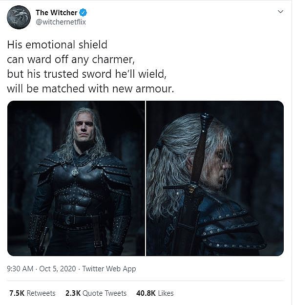On Twitter, Netflix would also reveal new photos of Henry Cavill’s Geralt of Rivia. Along with the photos they added, “His emotional shield can ward off any charmer, but his trusted sword he’ll wield, will be matched with new armour.”