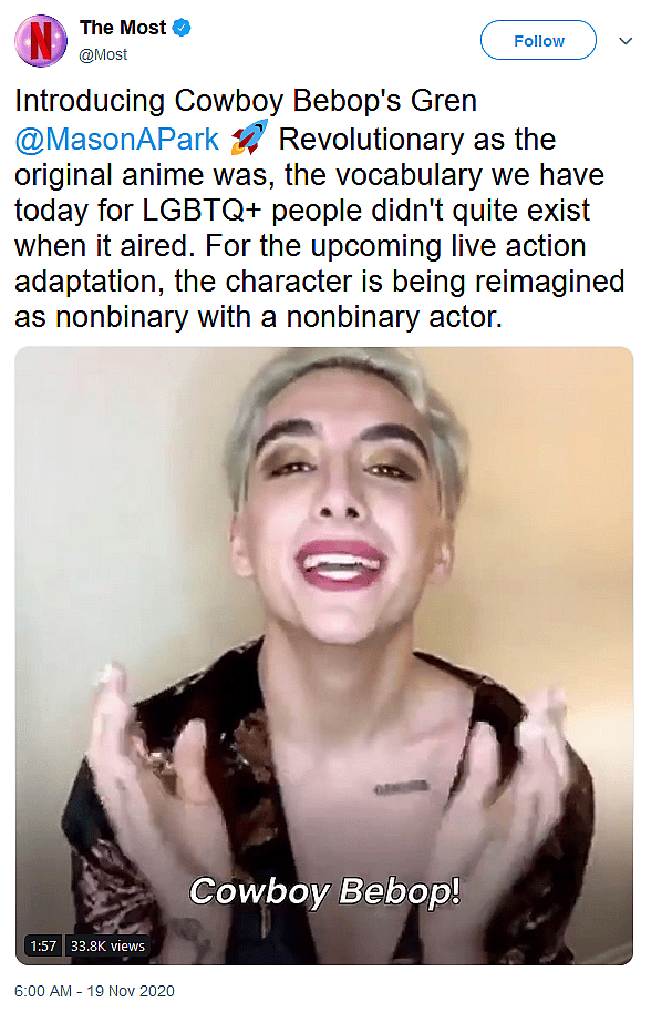 “Revolutionary as the original anime was, the vocabulary we have today for LGBTQ+ people didn’t quite exist when it aired.” said Netflix in a tweet from the @most account, introducing Park as Gren. “For the upcoming live action adaptation, the character is being reimagined as nonbinary with a nonbinary actor.”
