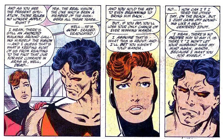 It would later be revealed that Wonder Man has his own feelings for Wanda and that’s the real reason he does not want to help her restore Vision to his former self.