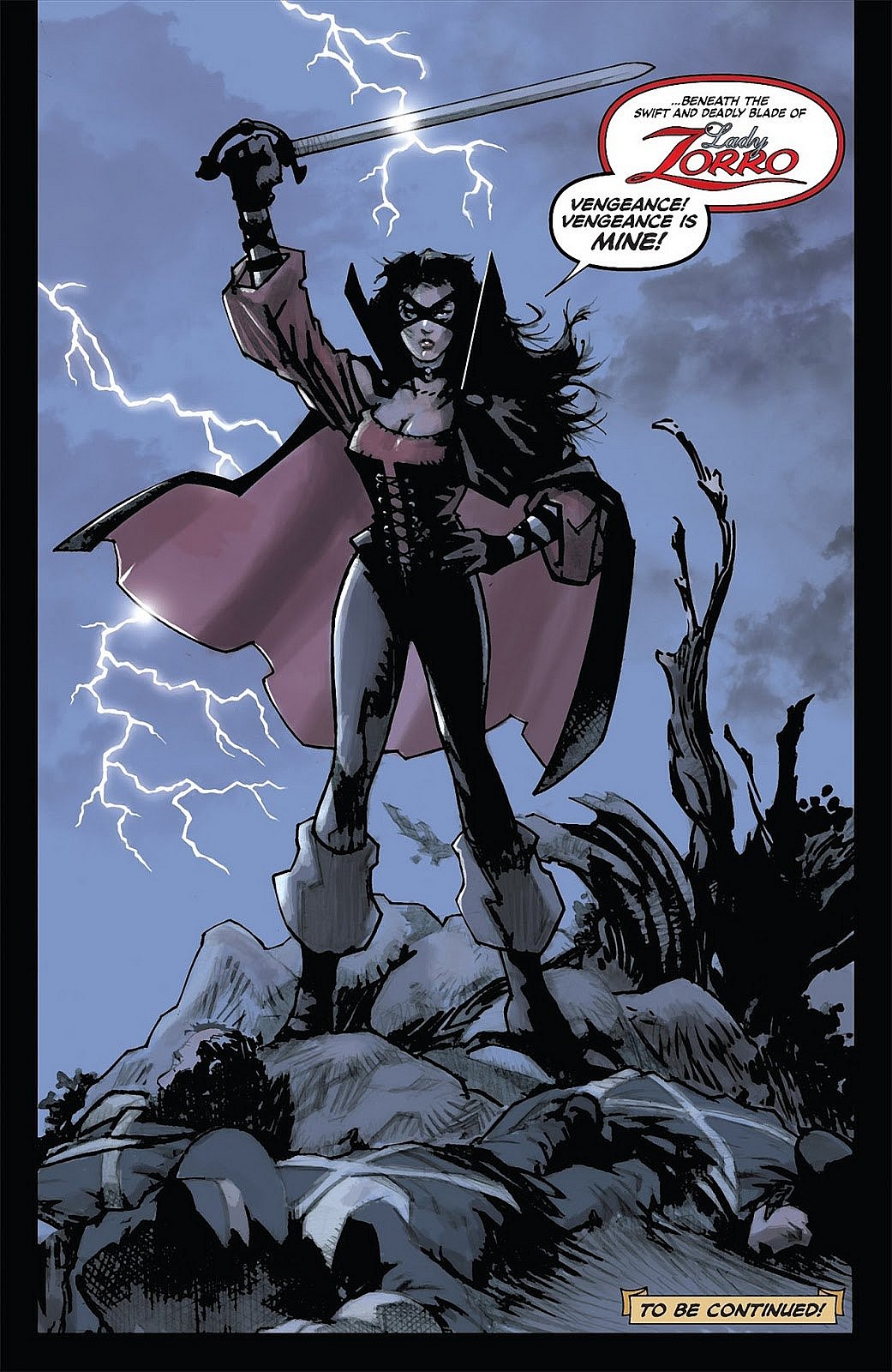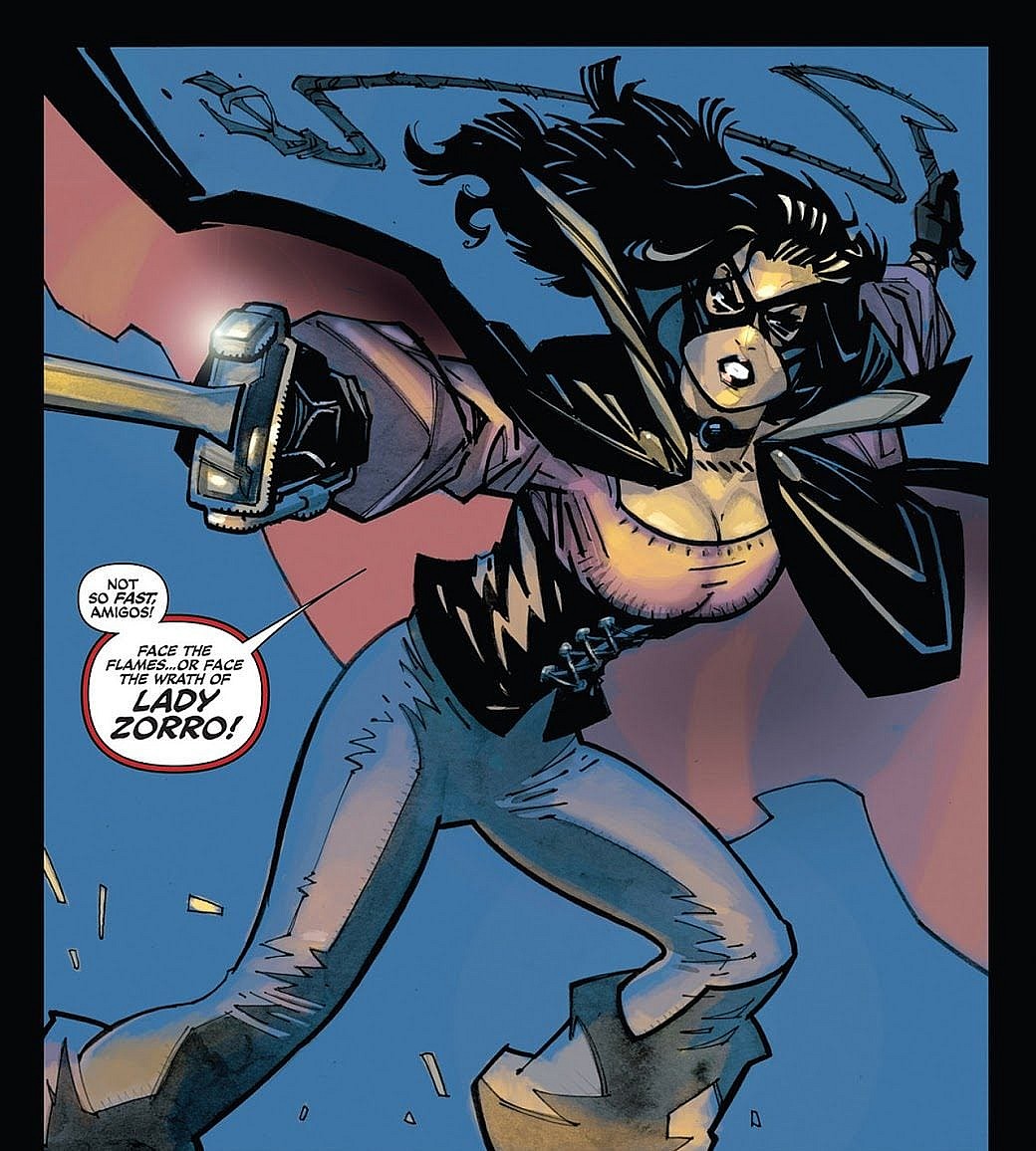 A female Zorro is not a new idea. Lady Zorro was introduced in Zorro Rides Again #9 by Matt Wagner and John K. Snyder III.