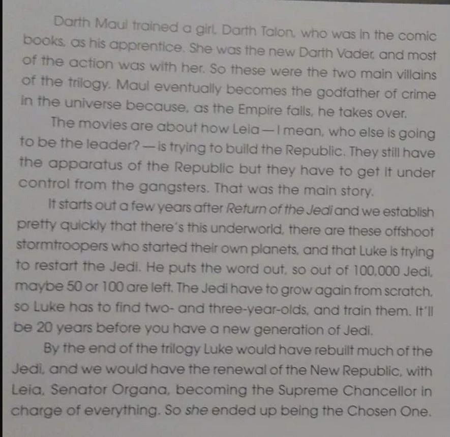 Lucas went on to say, “The movies are about how Leia – I mean, who else is going to be the leader? – is trying to build the Republic. They still have the apparatus of the Republic but they have to get it under control from the gangsters. That was the main story.”
