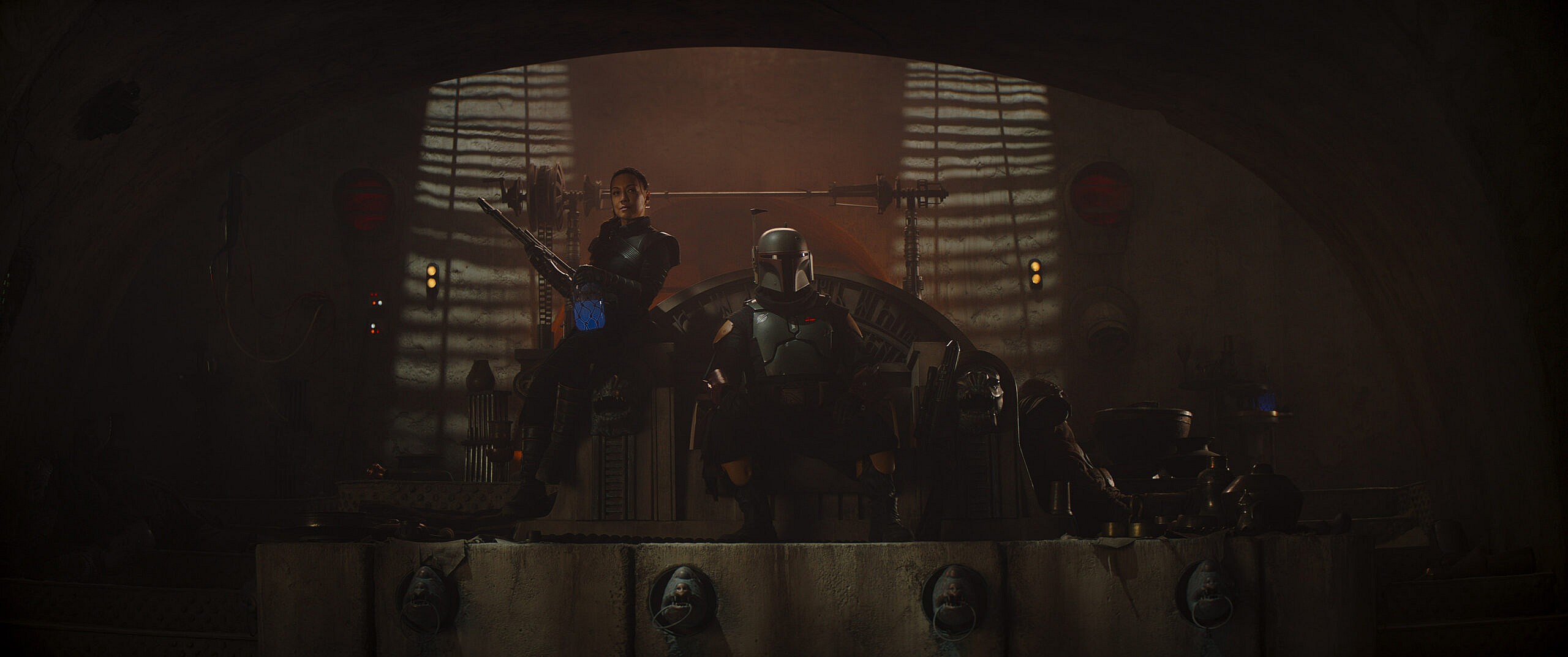 Boba Fett (Temuera Morrison) and the Mandalorian (Pedro Pascal) in Lucasfilm's THE MANDALORIAN, season two, exclusively on Disney+. © 2020 Lucasfilm Ltd. & ™. All Rights Reserved.