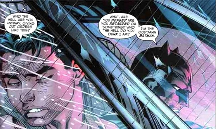 Batman suffers the worst, and you just know they’re coming at him with the contemporary agenda of tearing down the old guard patriarchal heroes to introduce the young, hip, diverse new ones who were ‘held down’ prior to their debut in the story.