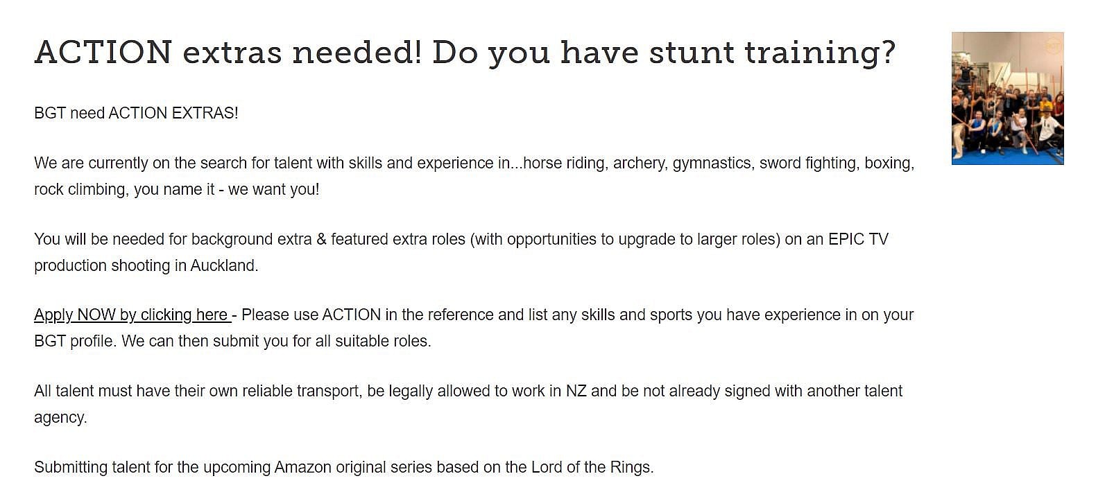 However, a separate casting call that does state it is for Lord of the Rings asks applicants to use the word “ACTION.”