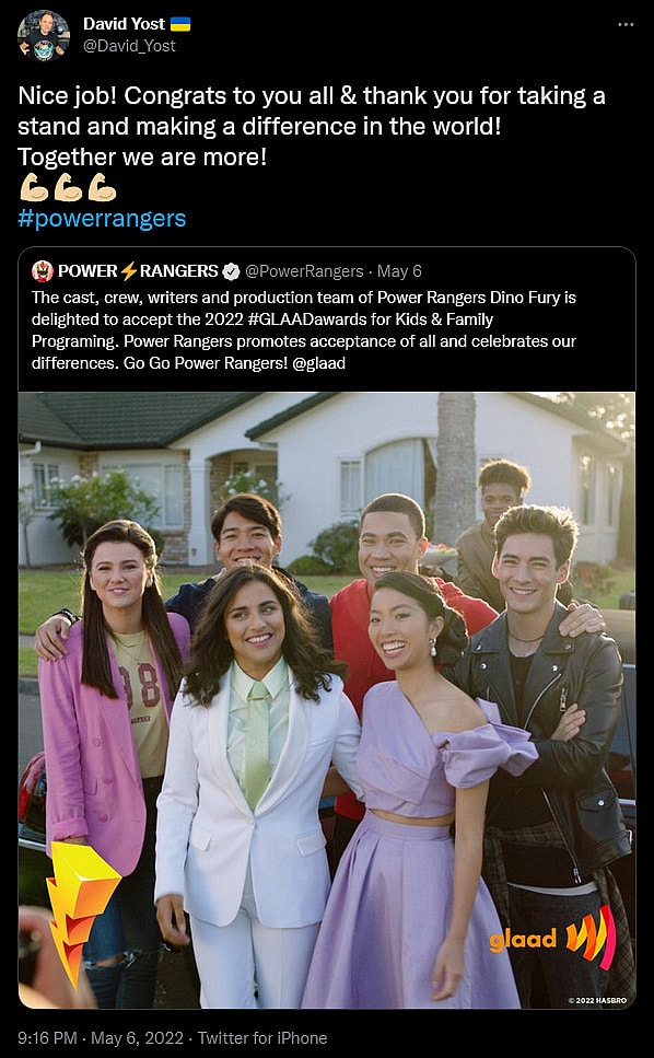 News of the series’ win eventually reached Mighty Morphin Power Rangers Blue Ranger actor David Yost, who left his role as a founding Ranger due to facing constant harassment over his own homosexuality by the show’s crew.