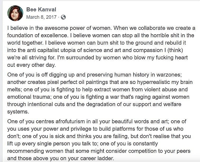 In another she wrote, “I believe women can burn s*** to the ground and rebuild it into the anti capitalist utopia of science and art and compassion I (think) we’re all striving for.”