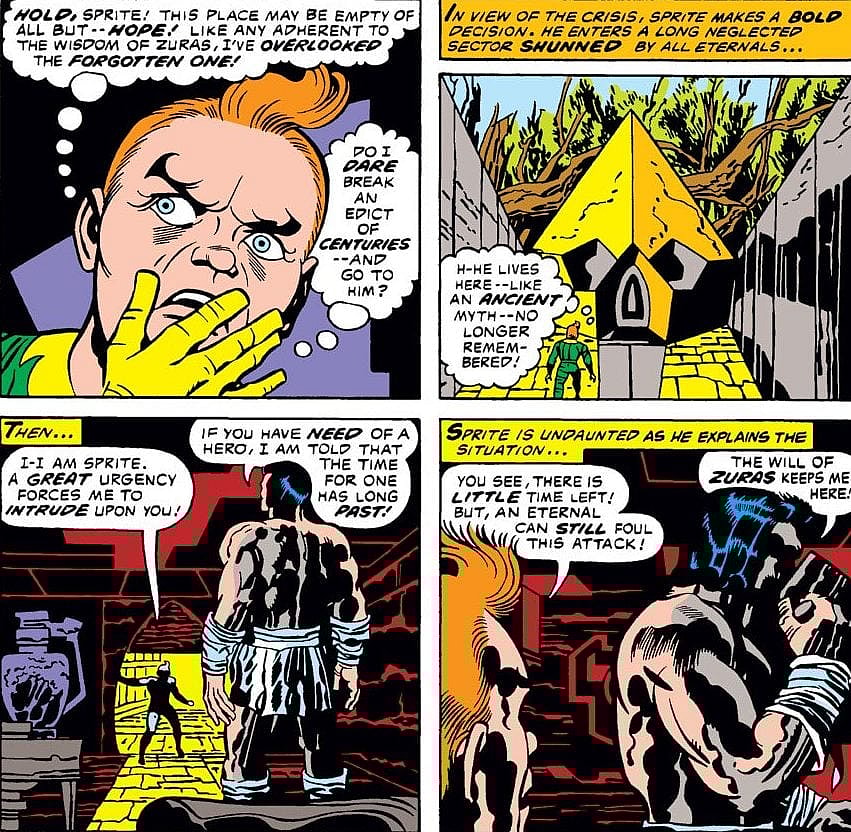 Finally, they also changed Sprite into a young female girl portrayed by Lia McHugh. In Sprite’s first appearance in The Eternals #9 he’s shown as a diminutive white man with reddish, orange hair.