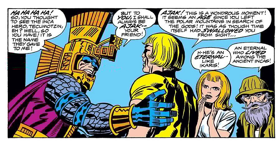 In his first appearance, Ajak is revealed to have lived among the ancient Inca Empire and is even referred to as the Inca Hero Tecumotzin, which is a fictional hero created by Jack Kirby.