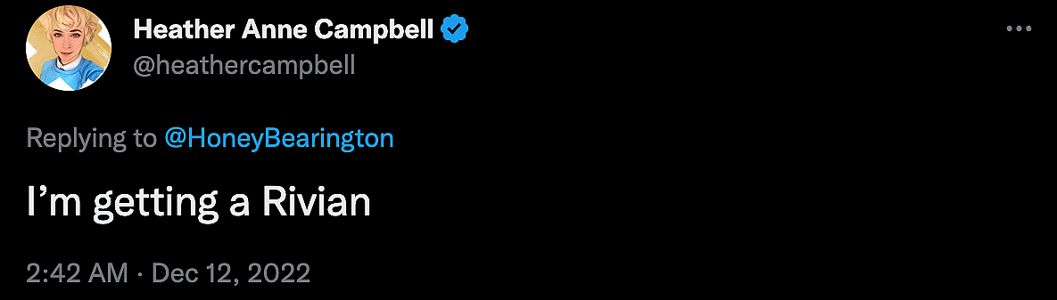 Ultimately, shortly after turning on her virtue signal, Campbell revealed that instead of a Cybertruck, she would instead be getting a Rivian-produced electric truck (which she notably considered as an alternative during her initial search for new vehicle suggestions).