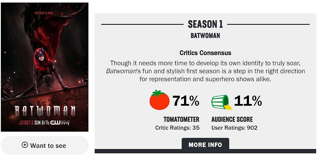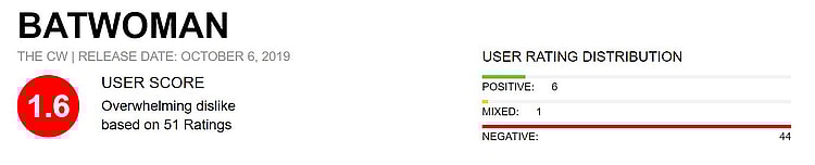 The Rotten Tomatoes audience score is in for The CW’s Batwoman series and it is not pretty at all. And it’s just as bad on Metacritic.