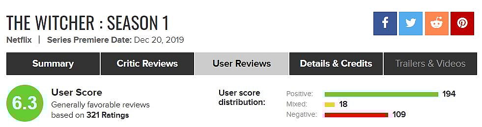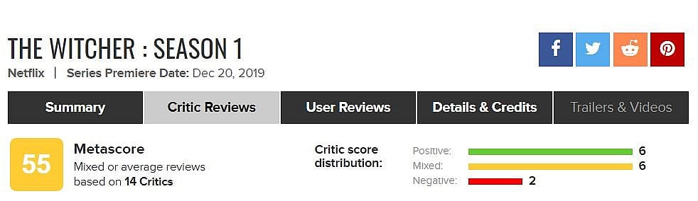 Over on Metacritic, The Witcher has a Metascore of 55 from 14 reviews.
