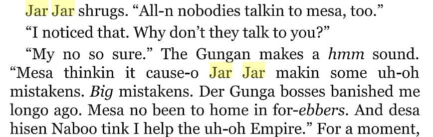 Binks last appearance in official Star Wars canon was in Chuck Wendig’s Aftermath: Empire’s End.