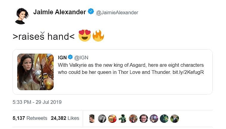 Related: Lady Sif Actress Jamie Alexander Volunteers to Be Valkyrie’s Queen in Thor: Love and Thunder