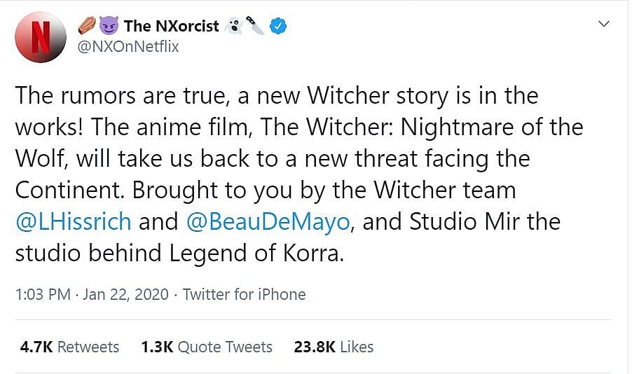 Aside from the main The Witcher series, Netflix has already announced two spinoff projects. The first is an animated film titled The Witcher: Nightmare of the Wolf.