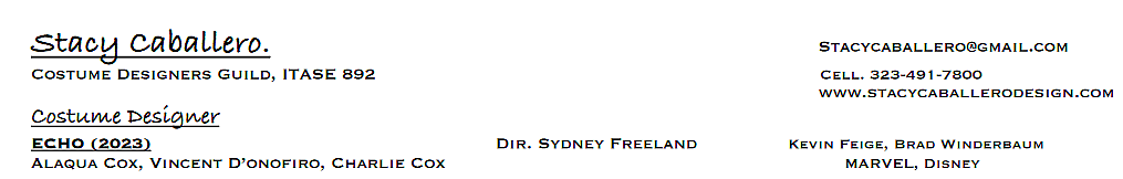 Therein, Caballero lists both D’onofrio and Cox as two of her costuming assignments for Echo.