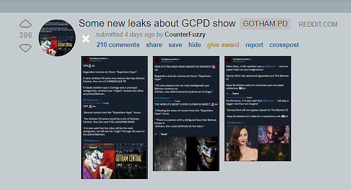 The post was also shared on the Reddit DCEUleaks page with screenshots of tweets by The Batman Central as evidence.