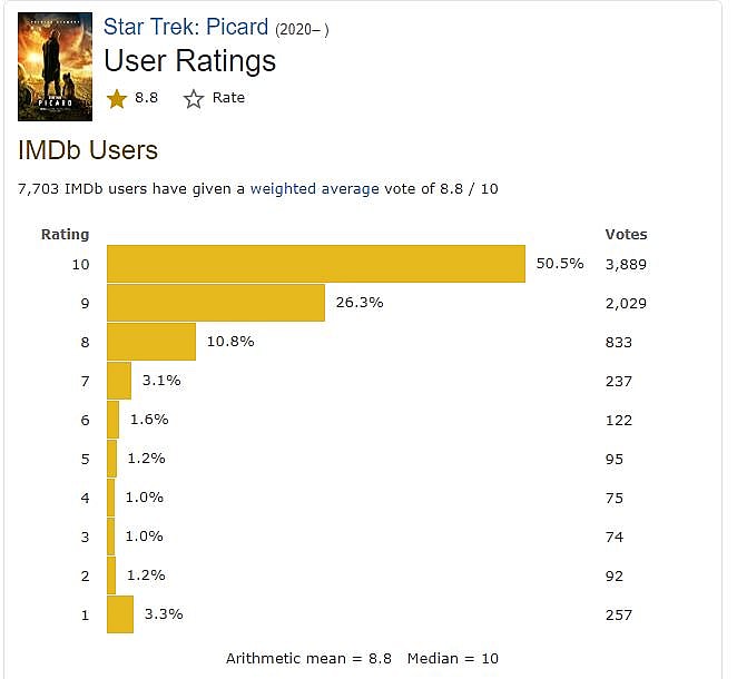 Not only are the Metacritic scores significantly lower, but a source tells me that Star Trek: Picard’s Episode 1 viewership was worse than the CW’s Batwoman, which has seen viewership dip below 1 million viewers during its premiere season.