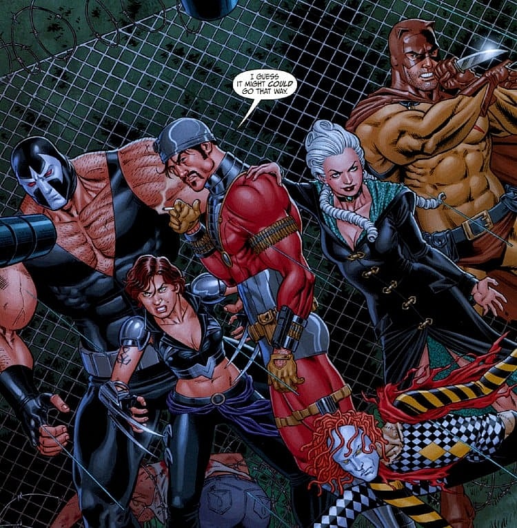 Her Secret Six, introduced in 2005’s Villains United #1, was a lot like the Suicide Squad, minus the bombs in their necks. The series saw established villains, from Deadshot to Fiddler and even Bane once upon a time, being brought together to carry out missions with a risk of high body counts.