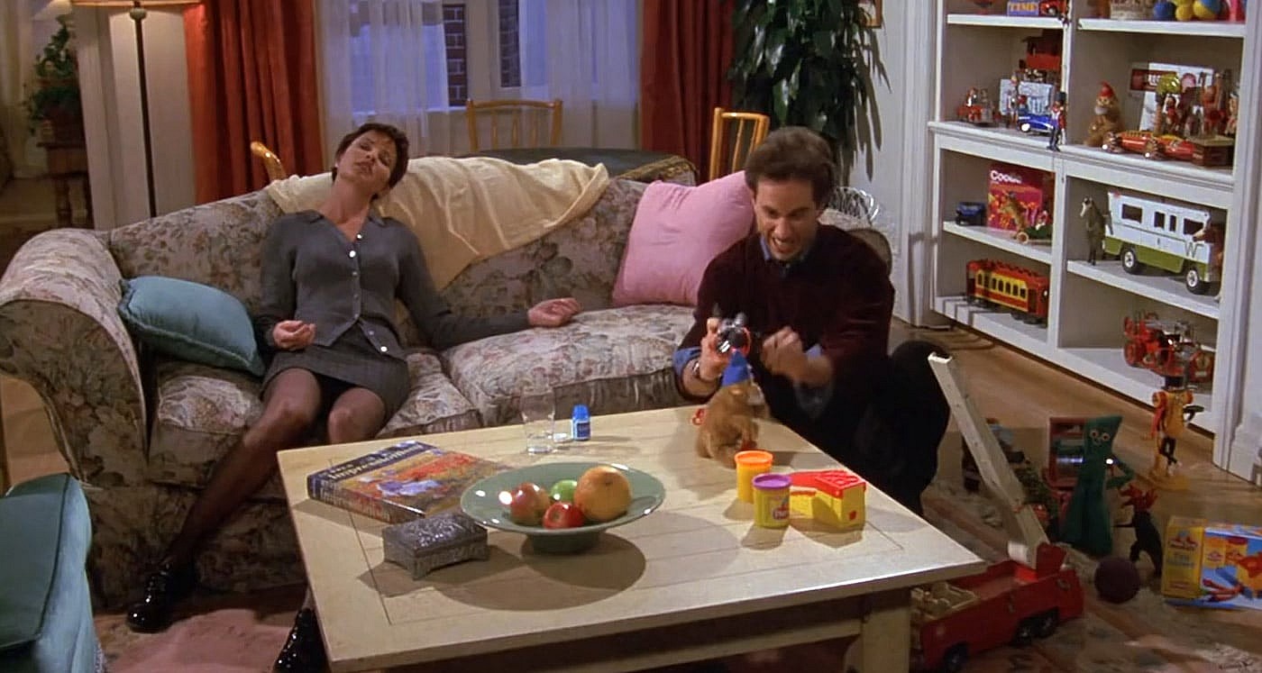 The 90s saw the cultural emergence of date rape drugs like Rohypnol, which unfortunately carried over into our modern day. Seinfeld, for its part, tried to poke a little fun at the idea by placing Jerry in a situation where he’s dazzled by his date’s vintage toy collection. The inner kid in him wants desperately to play with the toys undisturbed, so he comes up with a plan.