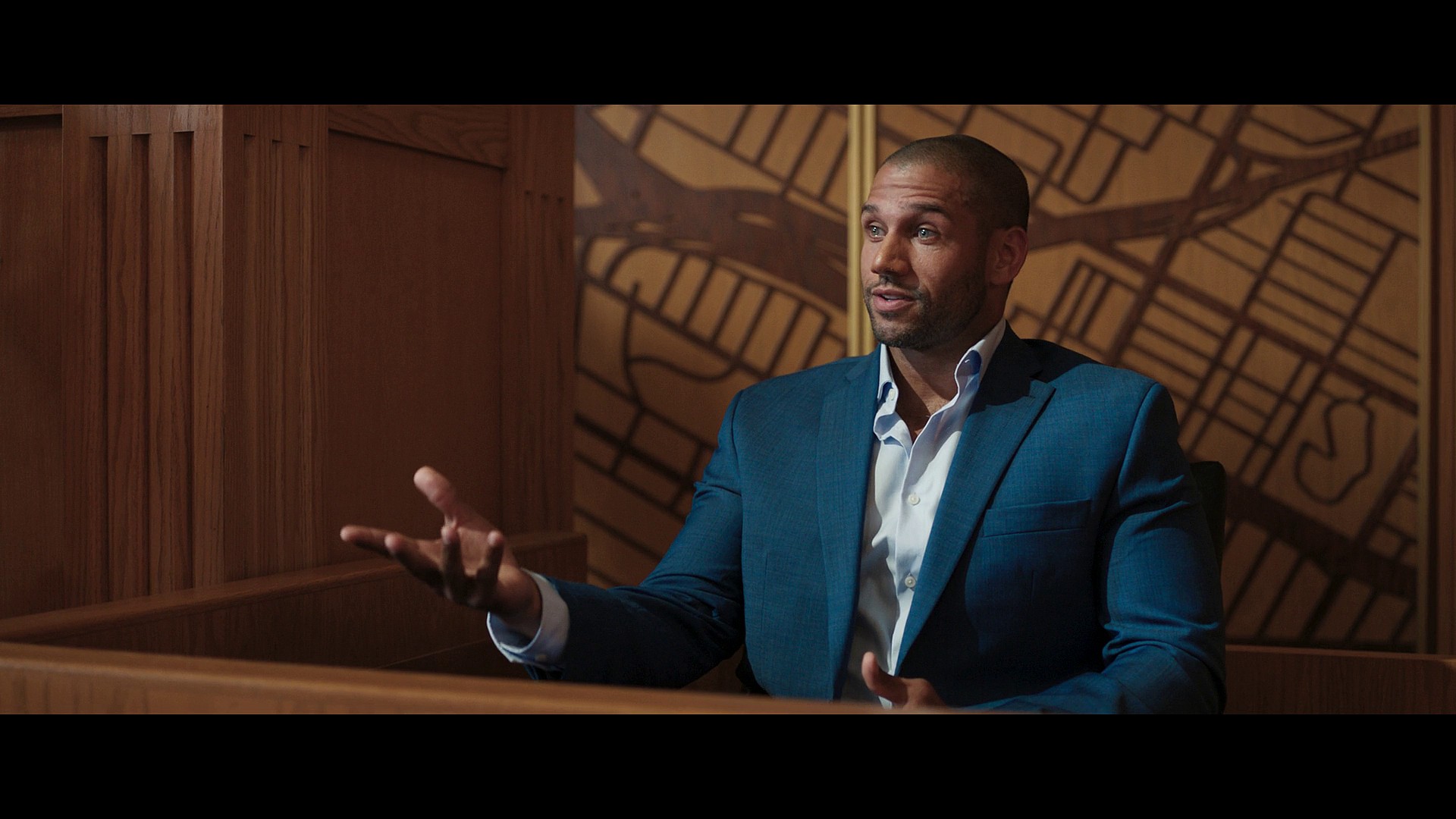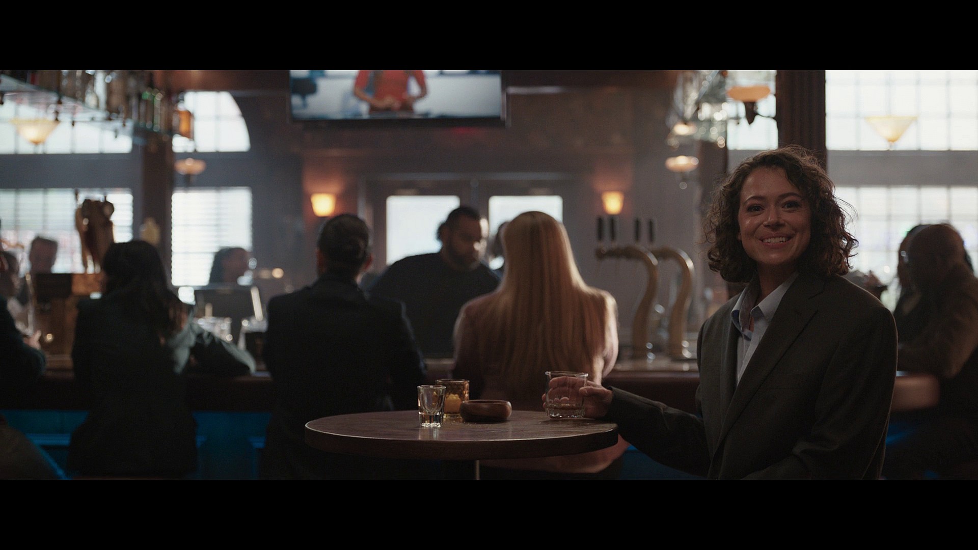 This hand-off is followed by a brief moment where Luke, looking in on Jen, compliments his own work before turning to close the changing room’s curtains and give her the privacy to change her clothes.