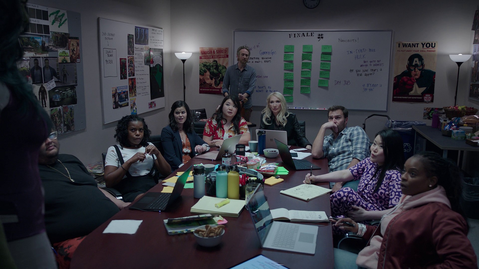 Making her way to the She-Hulk writer’s room, Jen argues that the show shouldn’t follow the same superhero tropes as the shows and movies before it, only to be met with the admission that they couldn’t do anything without Kevin Feige’s permission.