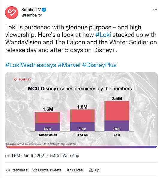 Loki had 731 million minutes viewed when it premiered back in June 2021. The Falcon and the Winter Soldier premiered with 495 million minutes viewed in March 2021.