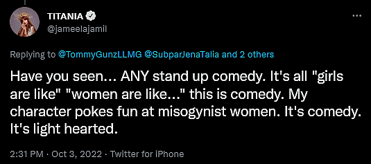 To this, Jamil argued, “Have you seen… ANY stand up comedy.”