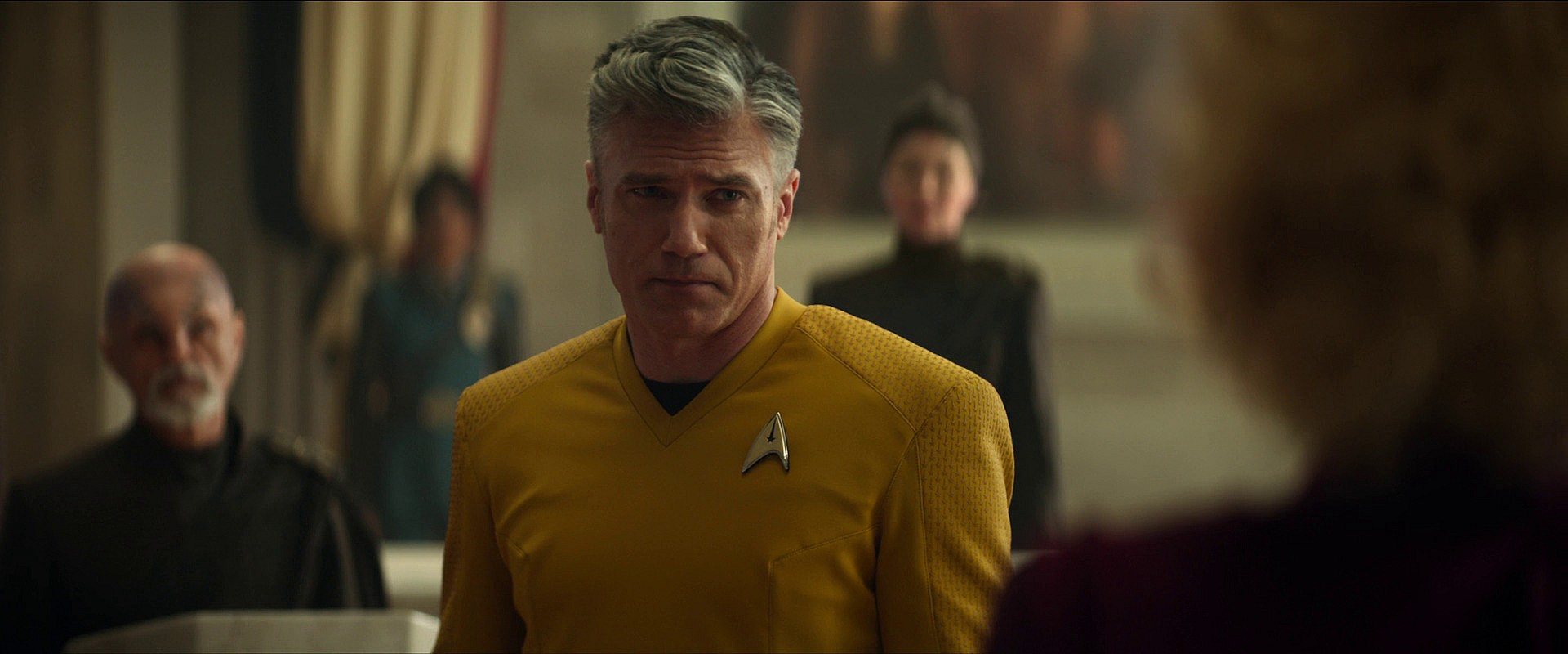 Observing the talks from aboard the Enterprise alongside his crew, Pike is met by his current first officer, La’an Noonien-Singh, who dismisses the Kiley’s entire conflict with her father’s last words, telling her captain, “Not believing you’re gonna die is what gets you killed.”
