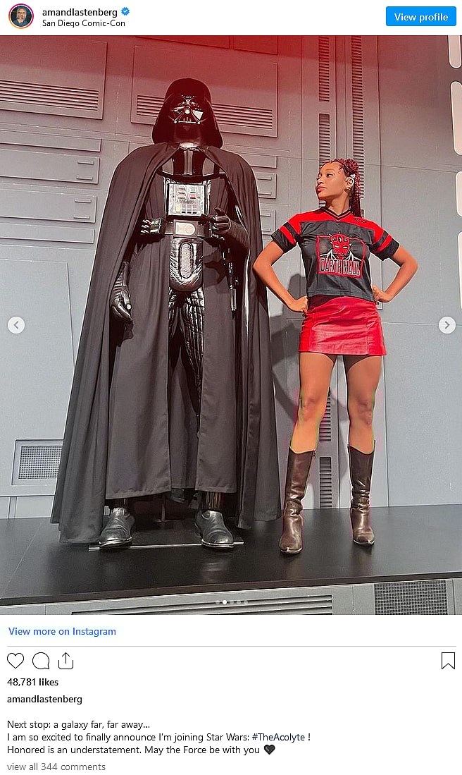 The official tweet redirected followers to Stenberg’s Instagram account where she posted, “Next stop: a galaxy far, far away… I am so excited to finally announce I’m joining Star Wars: #TheAcolyte ! Honored is an understatement. May the Force be with you.”