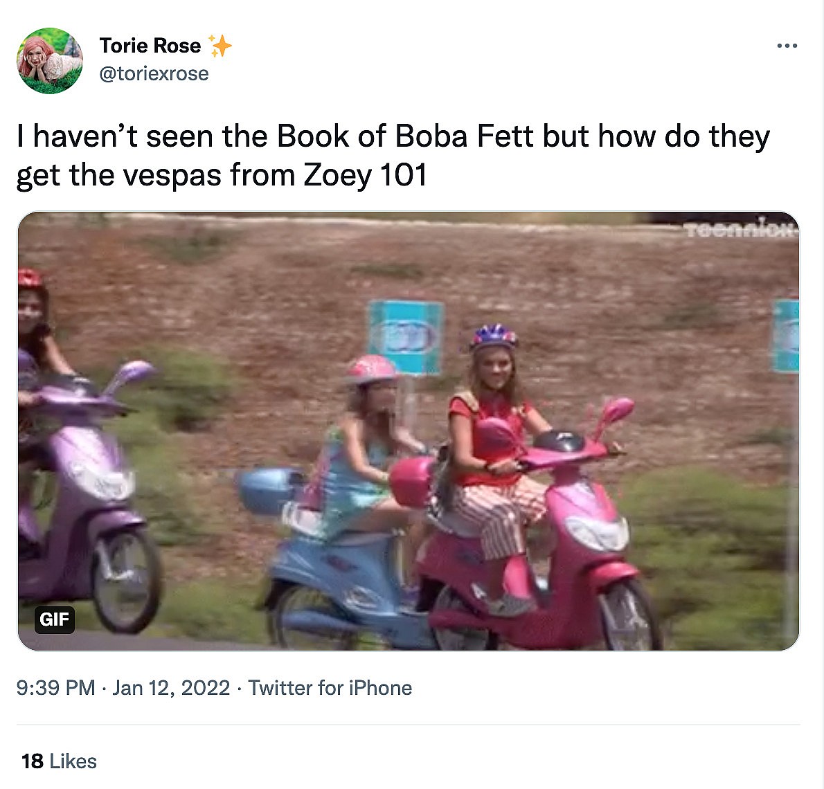 Another user tweeted, “I haven’t seen the Book of Boba Fett but how do they get the vespas from Zoey 101.”