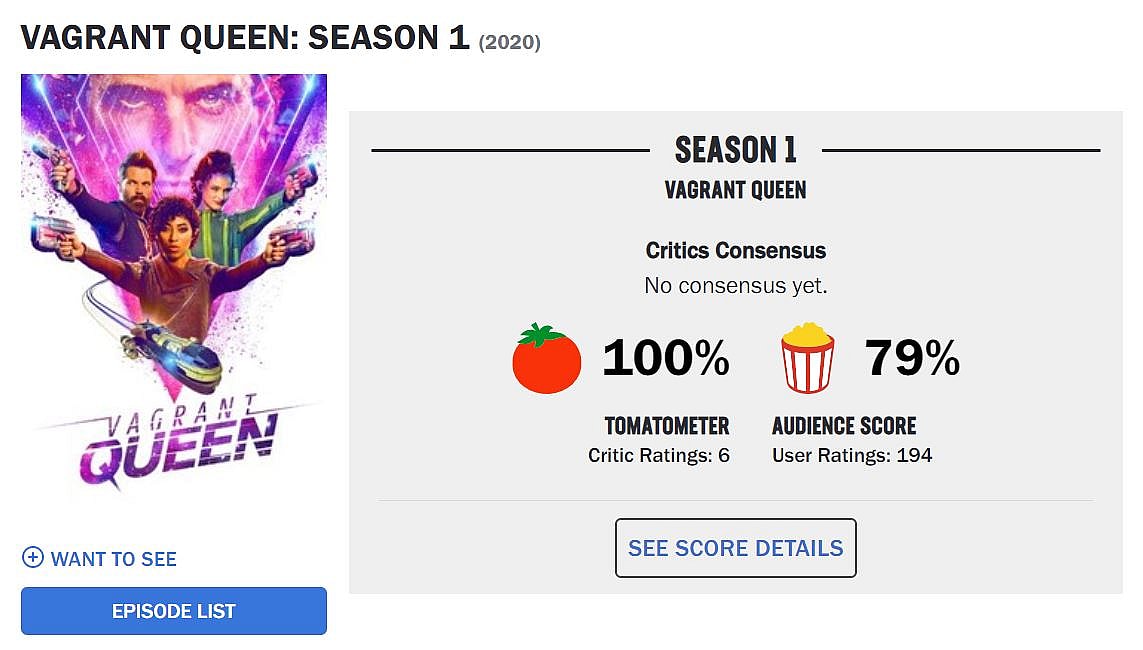 In fact, Vagrant Queen is the worst performing SyFy show of their current line-up according to TV Series Finale.