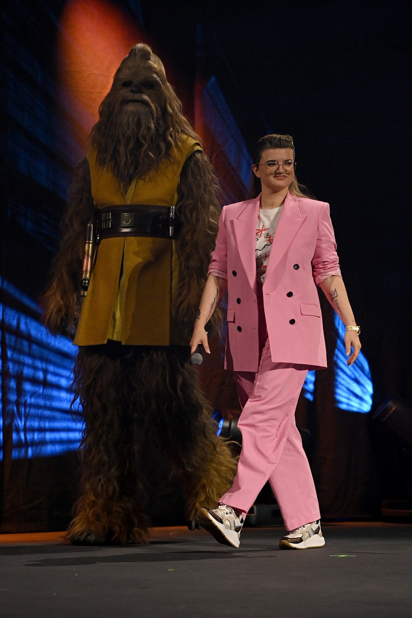 “We have a lot of the sabers,” she continued. “And the way Chris Cowan, and Mark Ginther, and Daren Nop, and all these wonderful, wonderful stars we have, have choreographed it in such a beautiful way — it’s like visually stunning. We watched some stuff the other day and it was just gorgeous. And then we have a bunch of fights as well where there are no sabers where it’s just like full on. Yeah, I can’s say much, but it’s also really fun and does look really just gritty and real. It feels like a fight.”