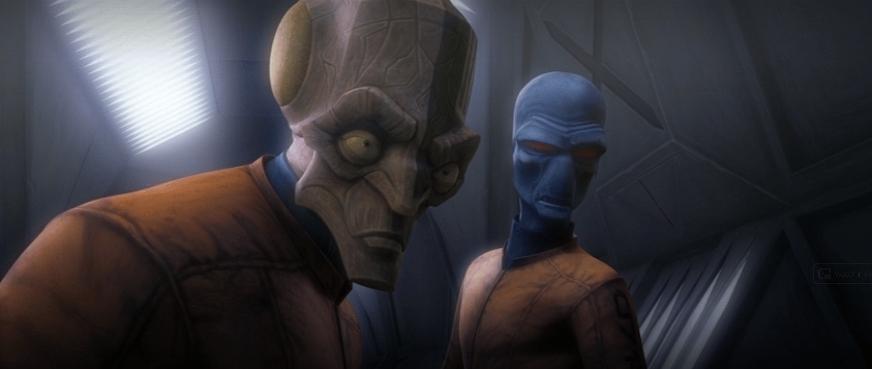 Also seen in “Bounty” is the bounty hunter Embo. While he’s not part of Fett’s team for the mission, he is seen exiting Fett’s base of operations just before Ventress alongside Bossk and Latts Razzi enter.