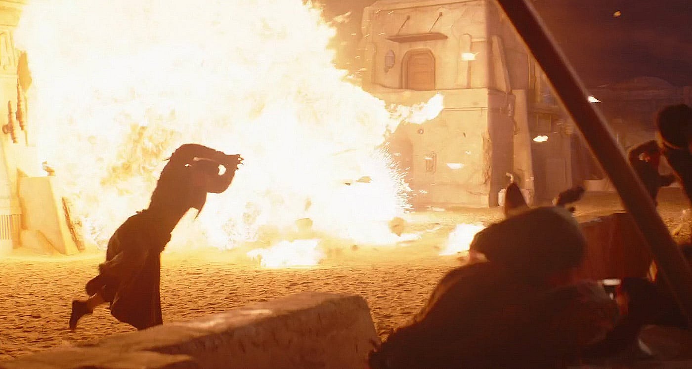 From there, The Book of Boba Fett injects an actual sense of danger into the show during a scene where the Sanctuary in Mos Espa is bombed by the Pyke Syndicate. The stakes are raised, the pieces are gathered, and war is brewing on the horizon.
