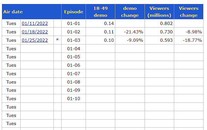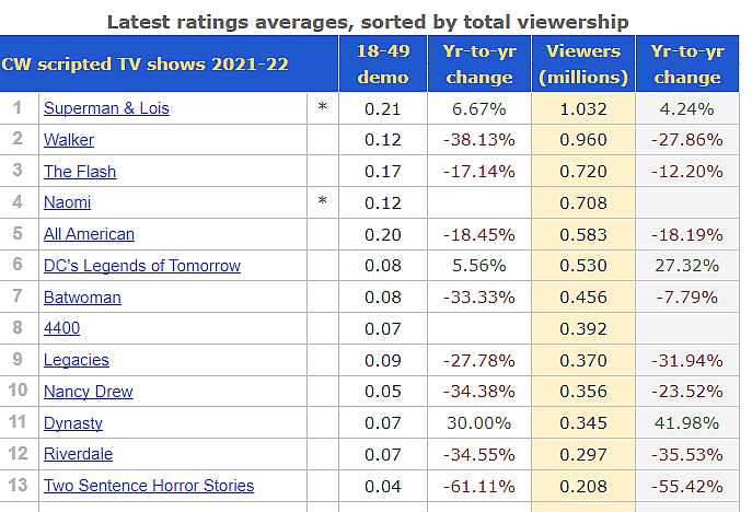 Despite this huge drop, the show is still one of the top performers for the current slate of CW scripted shows for the 2021-2022 season.