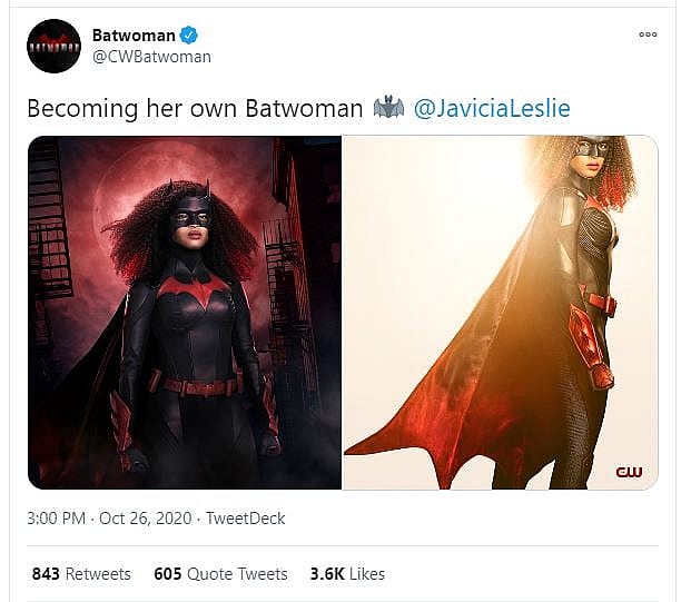 The CW revealed their first real look at actress Javicia Leslie as Ryan Wilder in her Batwoman suit.