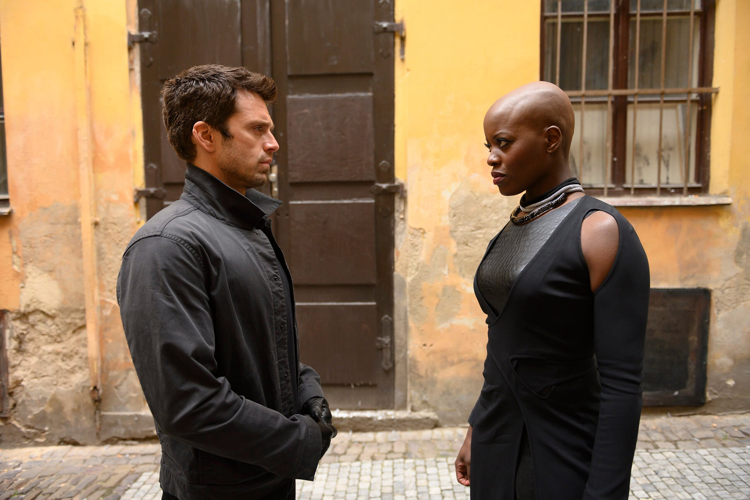 (L-R): Winter Soldier/Bucky Barnes (Sebastian Stan) and Falcon/Sam Wilson (Anthony Mackie) in Marvel Studios' THE FALCON AND THE WINTER SOLDIER exclusively on Disney+. Photo by Julie Vrabelová. ©Marvel Studios 2021. All Rights Reserved. Photo by Julie Vrabelová ©Marvel Studios 2021. All Rights Reserved.