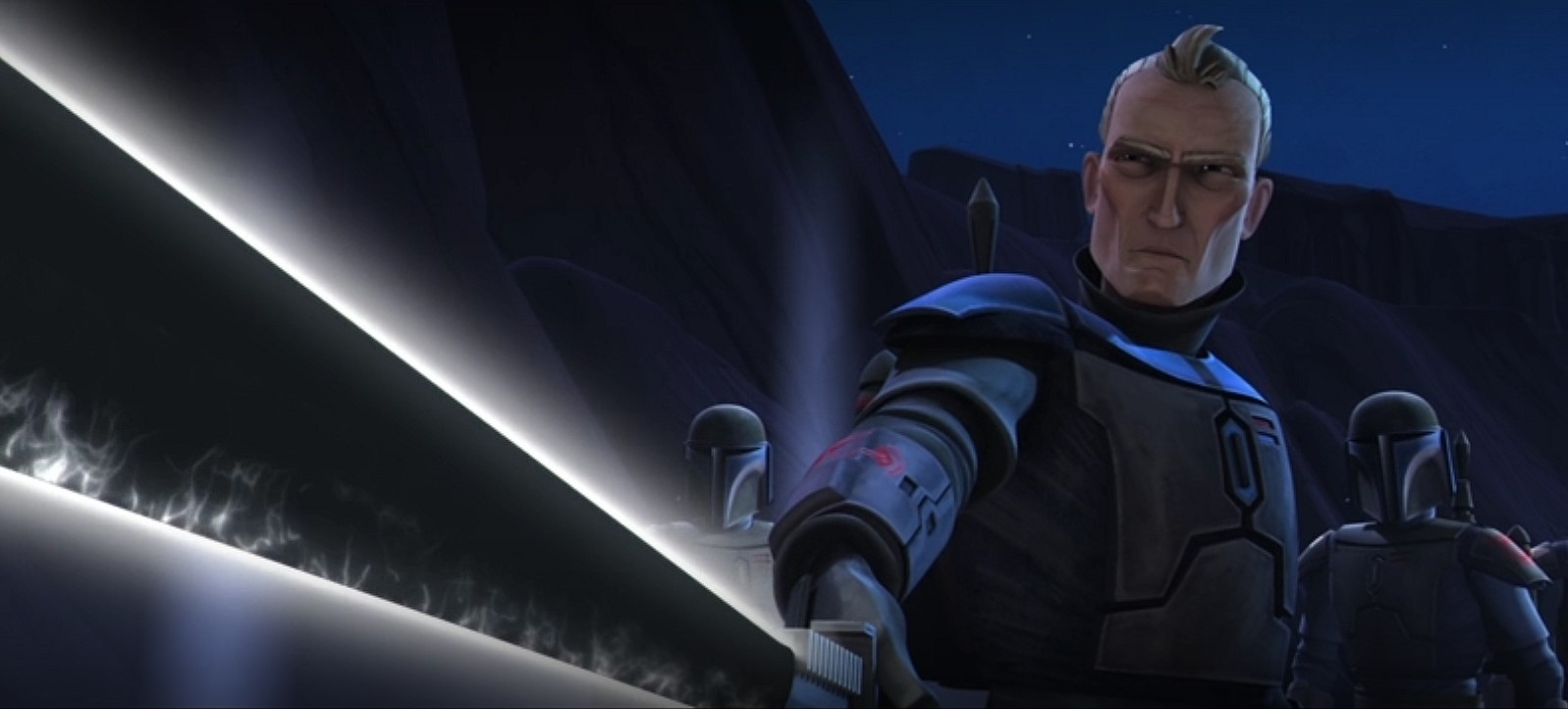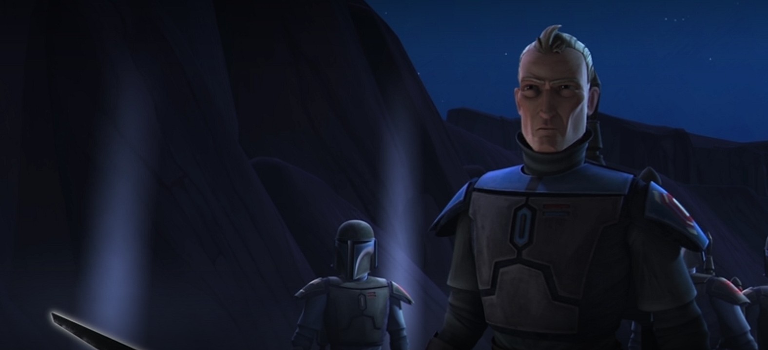 Sackhoff is right. This would be flashback stuff. If you are unfamiliar with Pre Vizsla, he was the leader of the Mandalorian terrorist organization known as Death Watch as well as the governor of the independent province of Concordia, where Mandalorian warriors from their civil war went after the war.