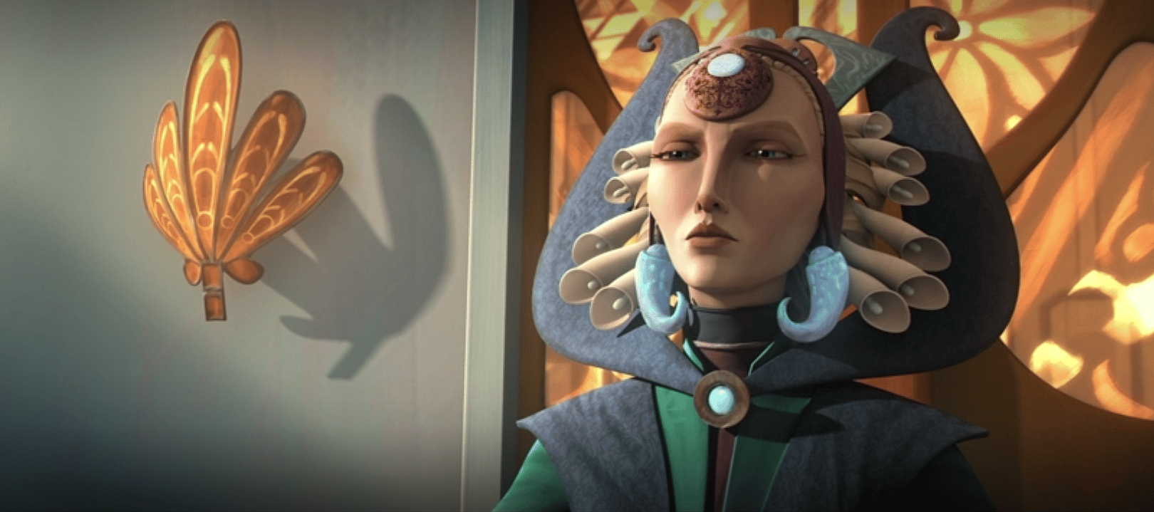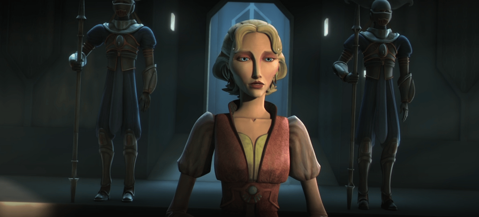 It’s not until Maul executes Pre Vizsla and claims leadership of the Death Watch and Mandalore that Bo-Katan rebels against him. After escaping Maul she does reunite with her sister and even attempts to free her. However, Mandalorian forces prevent their escape and Satine is placed back in prison, but not before they send a message to the Jedi Council.