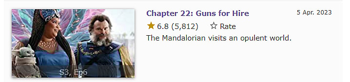 The Mandalorian “Chapter 22: Guns for Hire” currently has a mediocre 6.8 audience score on IMDb. Not only is this score the worst of this season, it is the worst rating for the entire series.