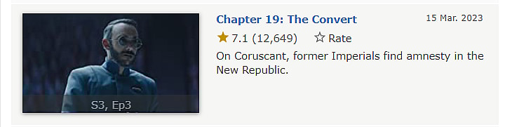 This latest episode unseated “Chapter 19: The Convert” that was previously the lowest rated episode with a 7.1 rating on IMDb.