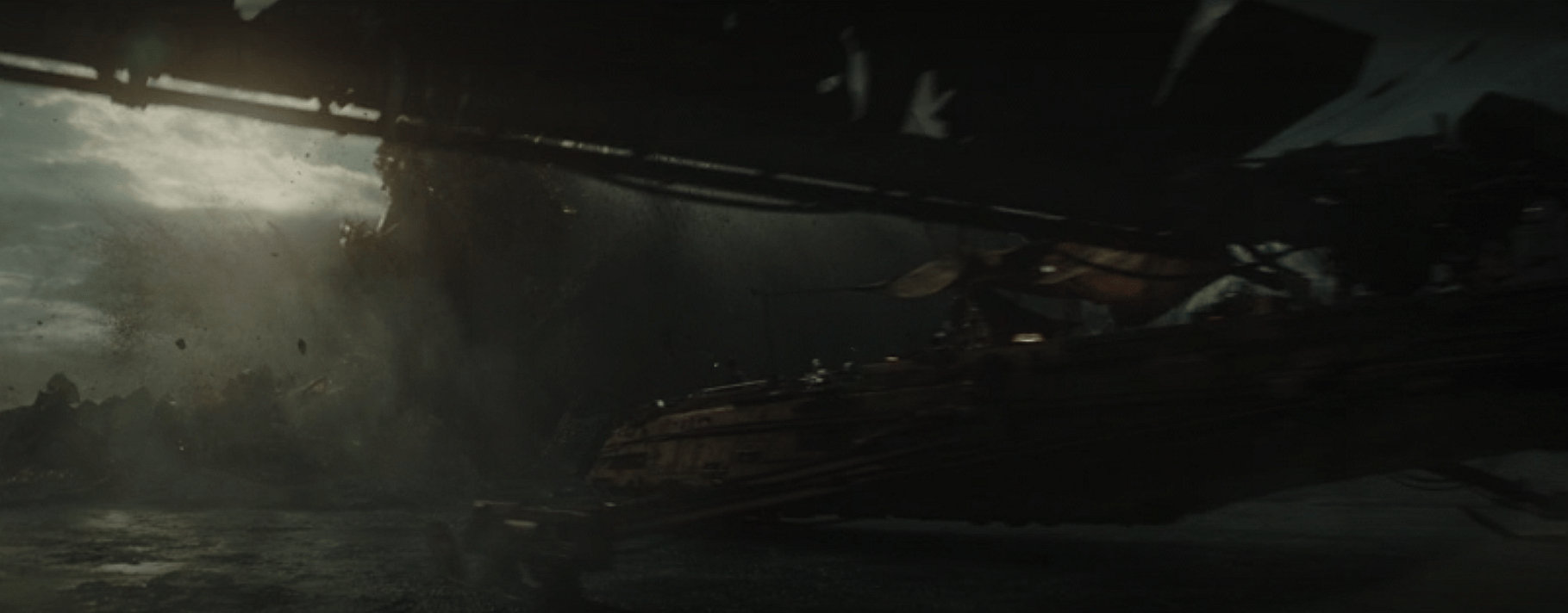 One of the more glaringly stupid scenes is the reintroduction of what appears to be the Mythosaur. While Bo-Katan and Din Djarin have teamed up with a number of alleged Mandalorian survivors on a land ship, who happen to know the location of the Great Forge since everyone else forget, they notice a giant creature surfacing from underground.