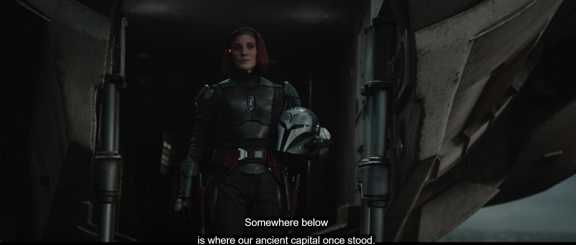 To highlight how terrible this, when Bo-Katan exits her ship and arrives on Mandalore she says, “Somewhere below is where our ancient capital once stood. We’ll survey the surface until we find the Forge and create a safety zone.”
