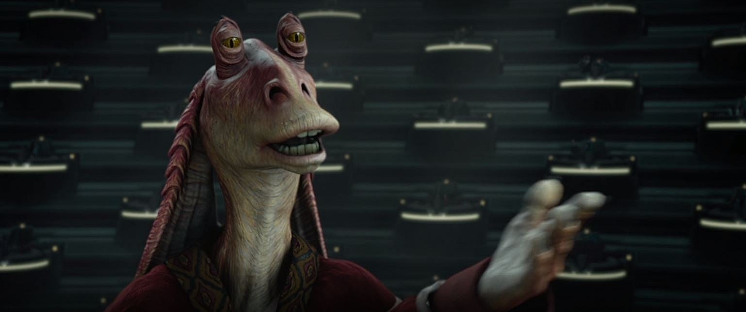 “And everyone knows that Jar Jar Binks gave the emergency powers to Sheev Palpatine. Basically, George Lucas when he said Jar Jar was the key to this, was the key to everything, Jar Jar was the key to the rise of the Empire and the fall of the Jedi order. But also being the key of the resurgence of the Jedi order. Kind of ticks all the boxes,” he theorized.