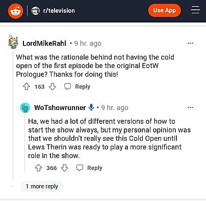 He wrote, “Ha, we had a lot of different versions of how to start the show always, but my personal opinion was that we shouldn’t really see this Cold Open until Lews Therin was ready to play a more significant role in the show.”