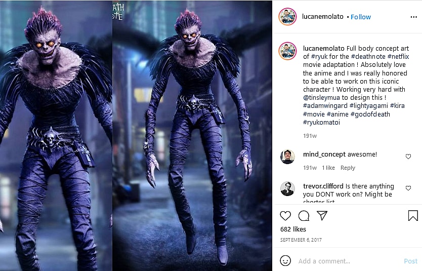 Outside of DC, Nemolato also worked on Netflix’s adaptation of Death Note, helping to bring to life what is arguably the only good thing about the film, the shinigami Ryuk.