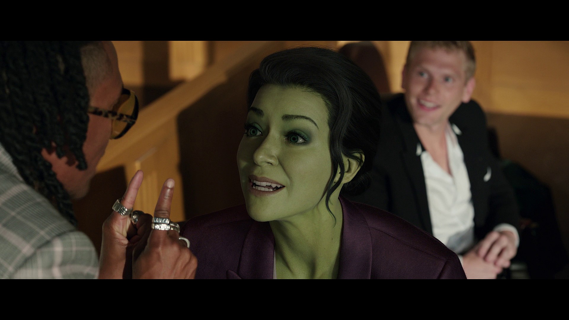 This shattering of her reputation (which let’s be honest wasn’t that good to begin with) leads Jen – the same woman who gave the massively condescending speech to Bruce in the first episode about how much better she was than him at controlling her ange – to go full Hulk, smashing up the banquet hall and rampaging through its walls in pursuit of some of Intelligencia’s members.