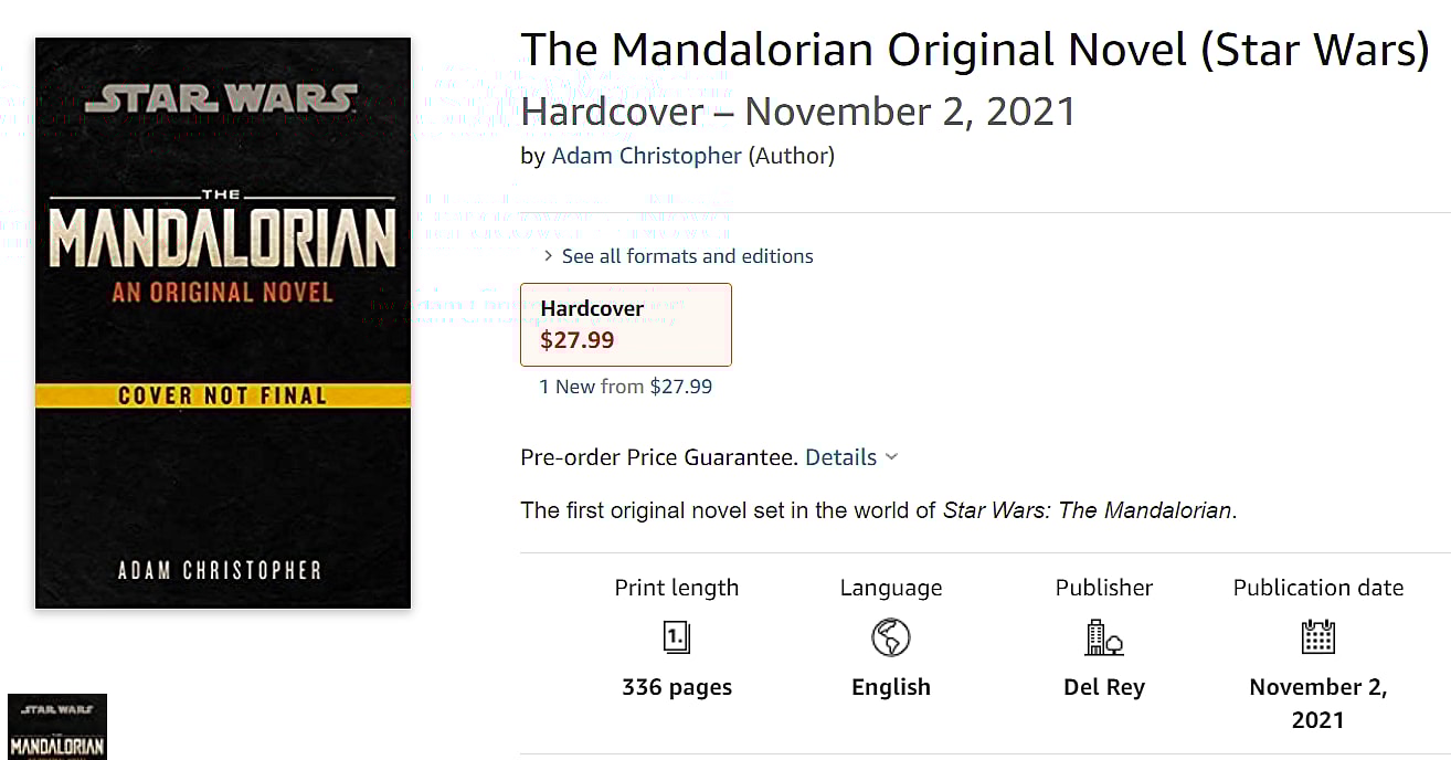 He goes on to cite a number of pieces of evidence including Del Rey’s previous announcement that The Mandalorian original novel had been delayed to Fall 2021.