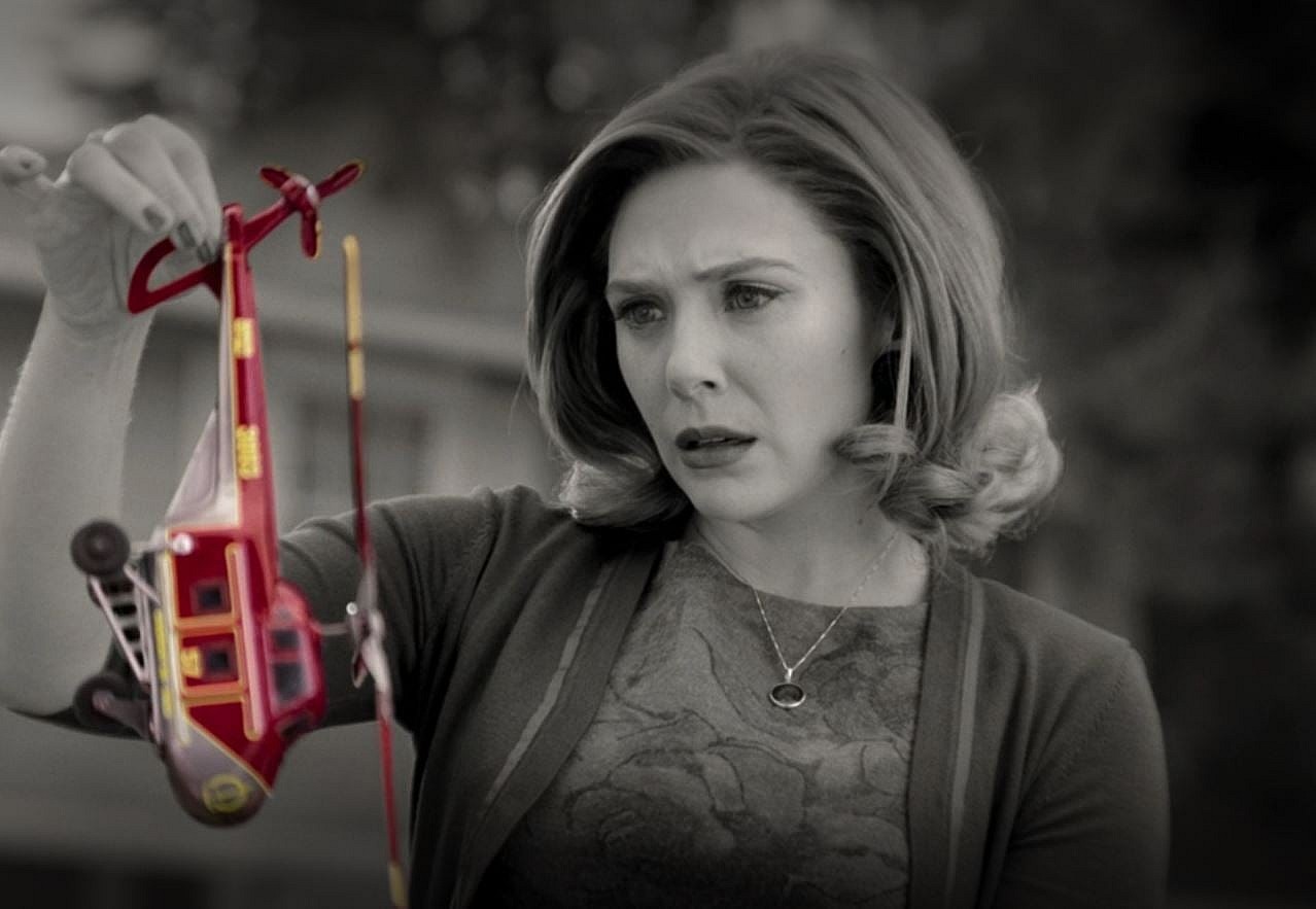The show continues to maintain this idea they are in a sitcom, albeit there are some hints that not is all as it seems. Wanda finds a painted toy helicopter with the S.W.O.R.D. logo in her yard.