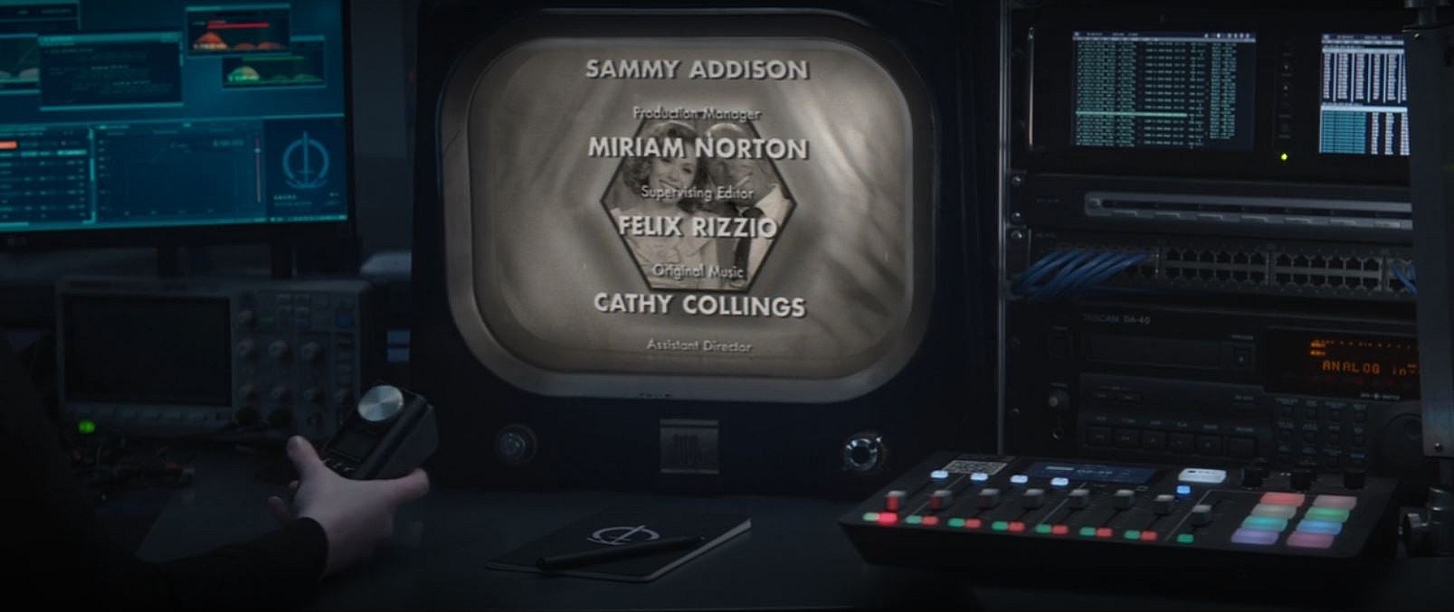 The camera zooms out and we see the credits role for this later 1950s or early 1960s WandaVision show.